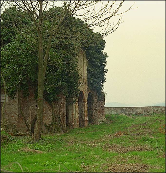 il perimetro tra la folta vegetazione che soffoca e sgretola i muraglioni.